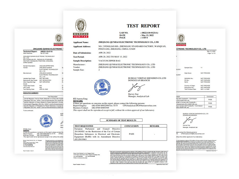 Ons bedrijf heeft de voedselcontacttesten voor BPA doorstaan, conform de eisen van de Europese Unie, Duitsland, Frankrijk en Italië. We hebben tevens de testen van de Amerikaanse FDA, de EU RoHS-richtlijn en de RACH-richtlijn met succes afgelegd.