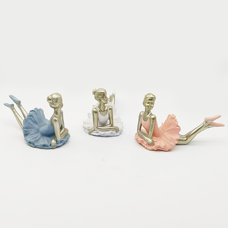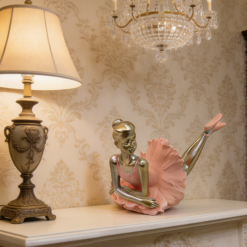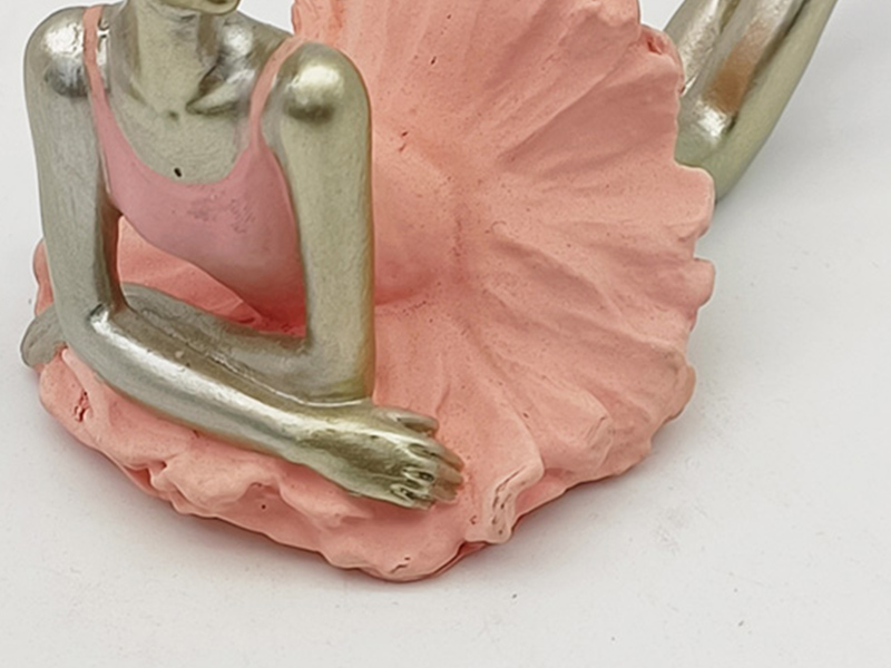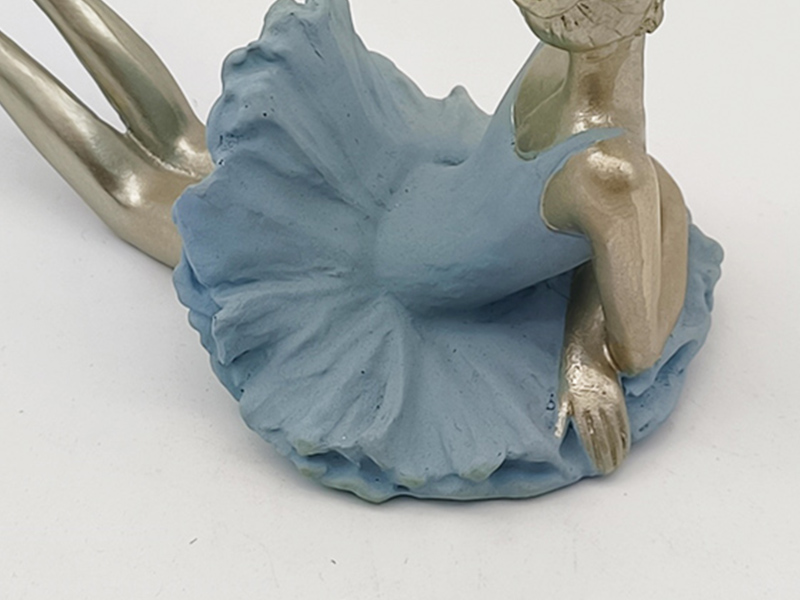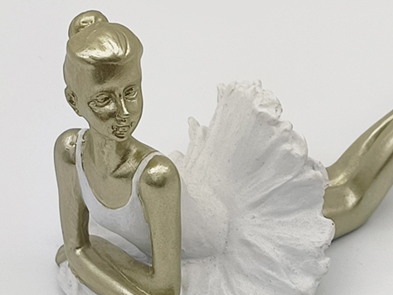 Materiaal en kleur: Gemaakt van hars. De huid en lichaamsdelen van de danseressen hebben een champagnekleurige metallic textuur. De balletjurk en -schoenen zijn spierwit. Het contrast tussen goud en wit zorgt voor een eenvoudige en elegante uitstraling, met een gladde en fijne oppervlaktestructuur.