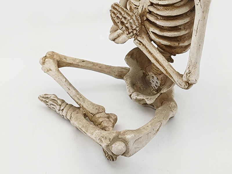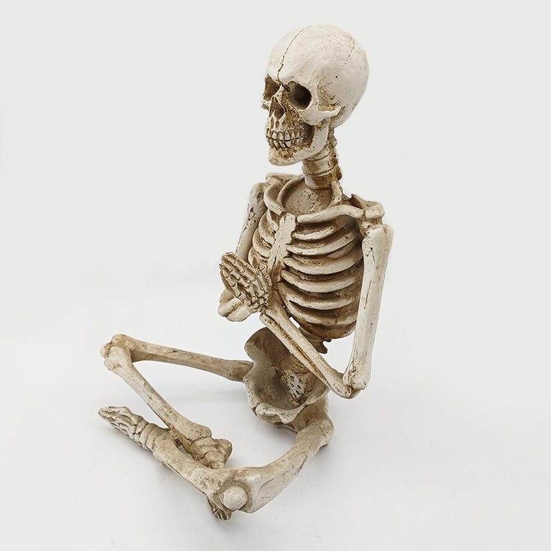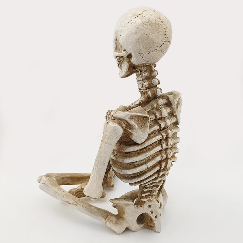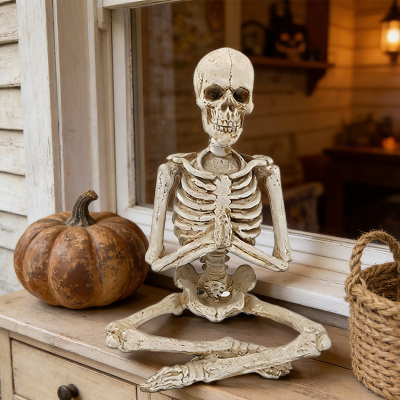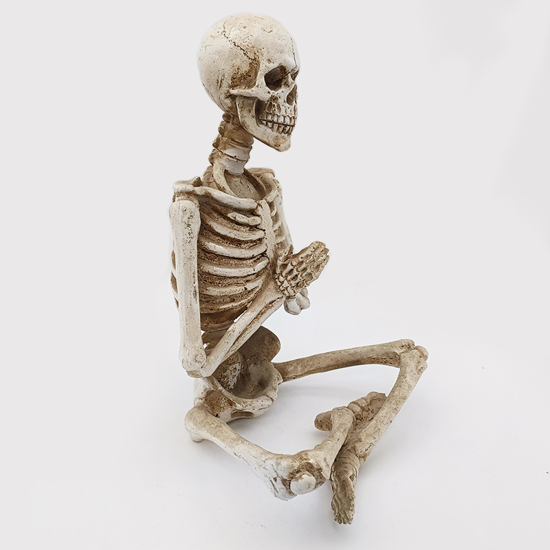 Wanneer een skelet het concept van Zen ontmoet, ontstaat er een unieke artistieke vonk. Dit zittende skeletbeeldje, met zijn ontspannen gekruiste benen en devoot gevouwen handen, verdrijft de duistere uitstraling die een skelet van nature heeft. De retro, verouderde textuur geeft elk botpatroon een vleugje van de tand des tijds. Op tafel geplaatst, dient het als een persoonlijke decoratie.