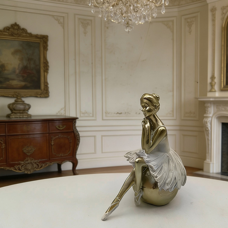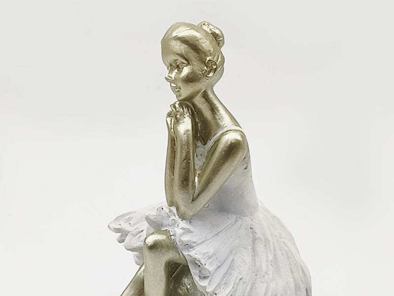 Materialen en vakmanschap: Het hoofdgedeelte is gemaakt van hars, met een gladde, matte en glanzende textuur op het oppervlak. De huid van de danseres en het bolvormige gedeelte hebben een metallic champagnekleurige/lichtgouden textuur, de rok en de balletschoenen zijn zachtroze.